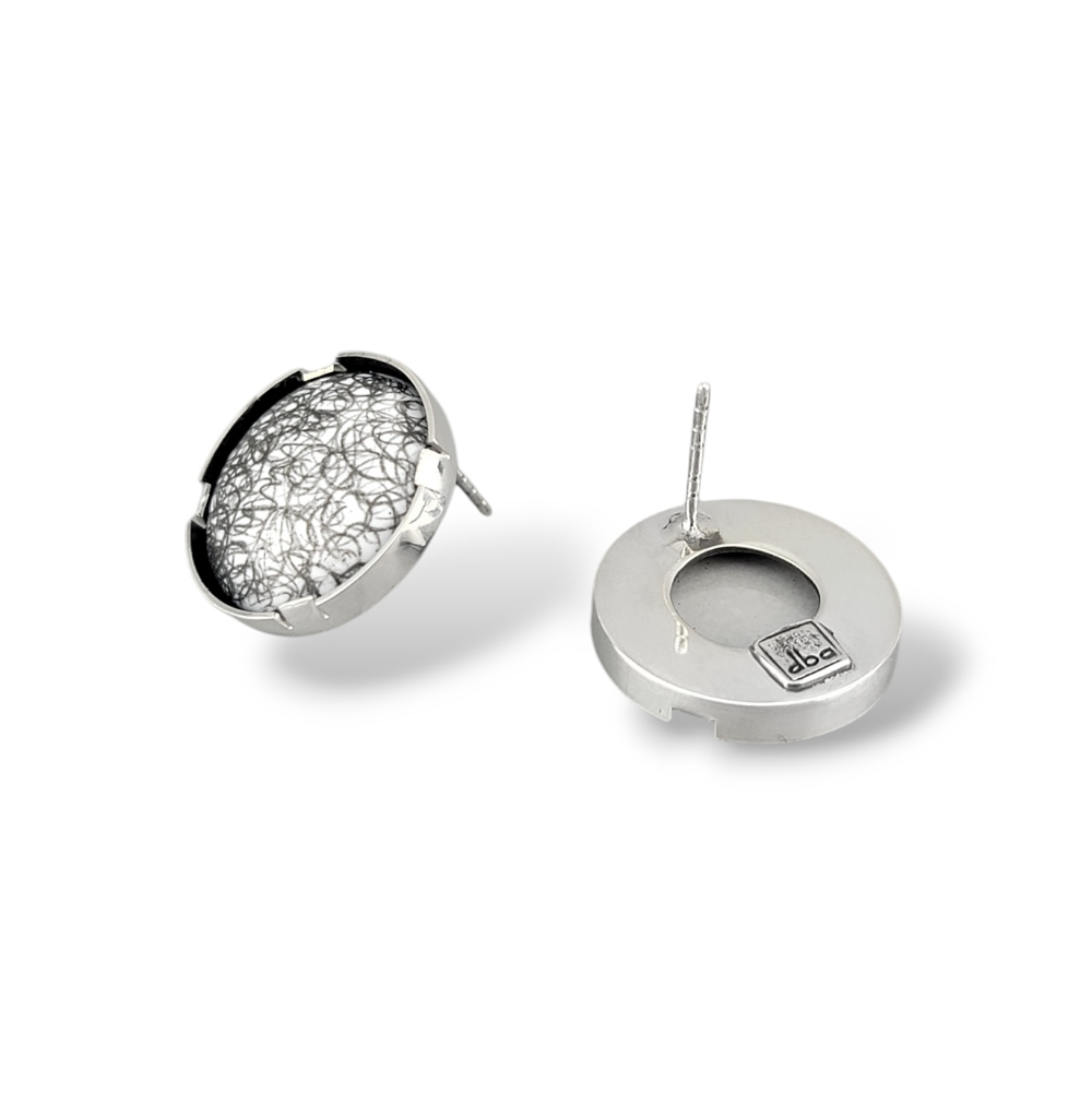 Graphite enamel post earrings set in sterling silver. Patina added for contrast.