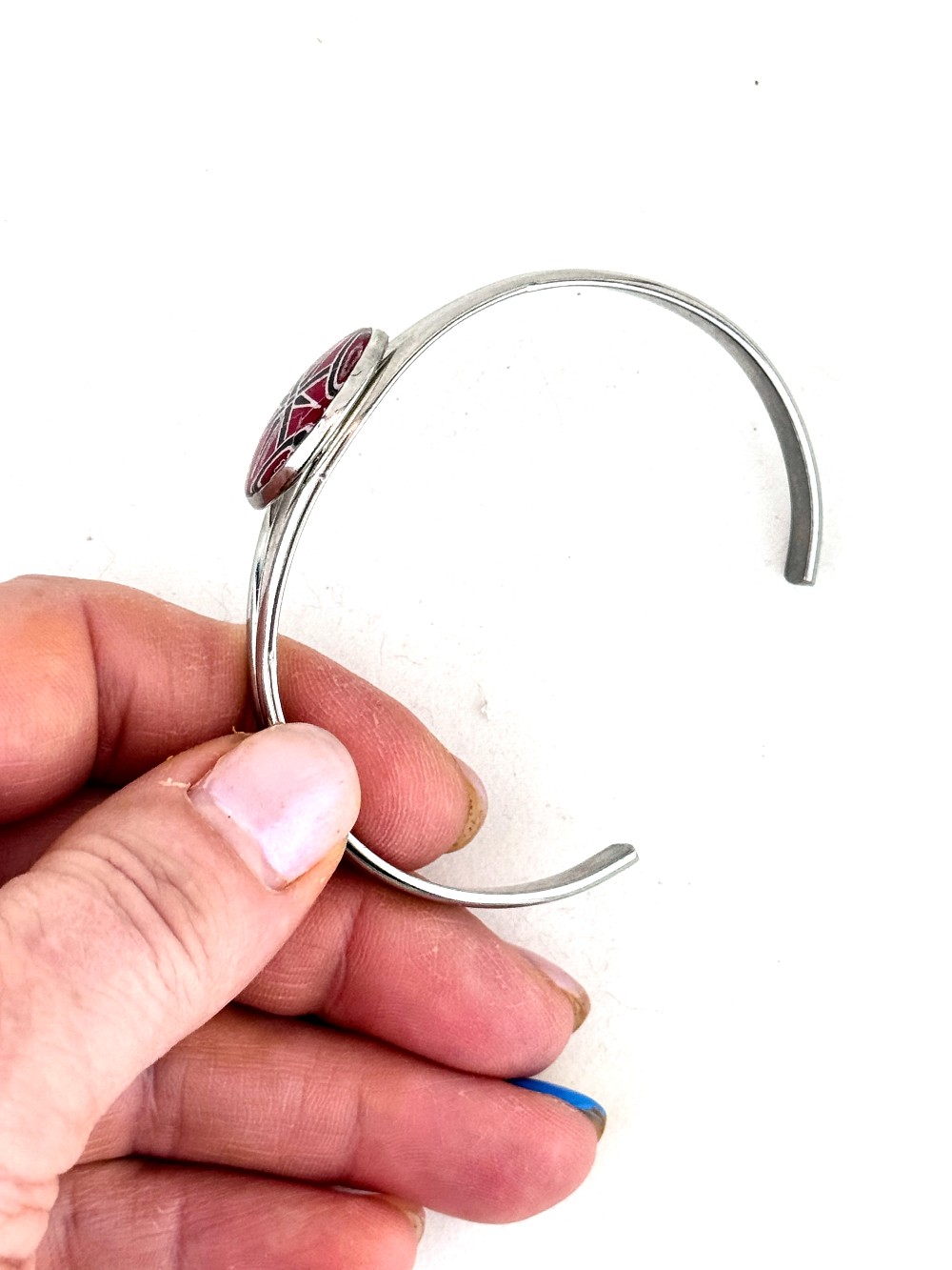 Silvertone Cuff bracelet, Mosaic of Goose eggshell (3/4")