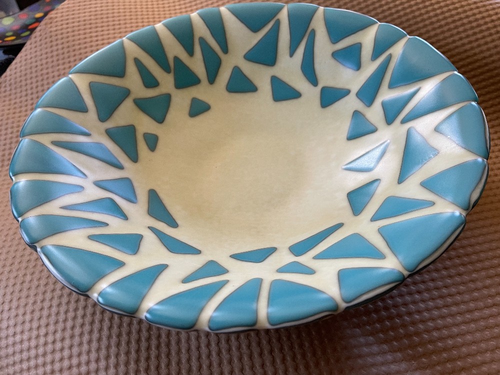 Flip bowl in two contrasting colors, 14" dia, 3" deep