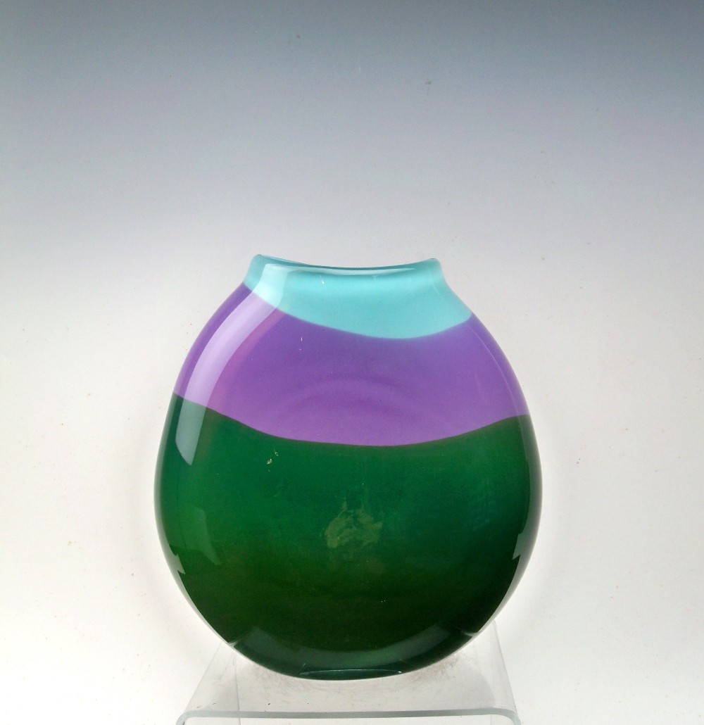 Green, Violet and Celadon Flat sided vase 7" Tall - 7" wide with a 2-3/4" mouth