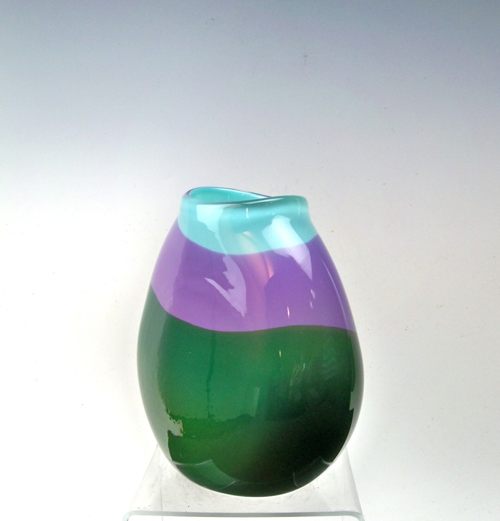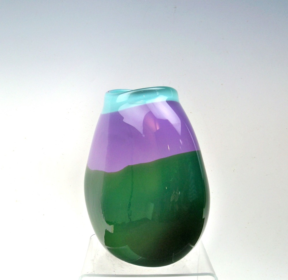 Green, Violet and Celadon Vase 7" Tall - 7" wide